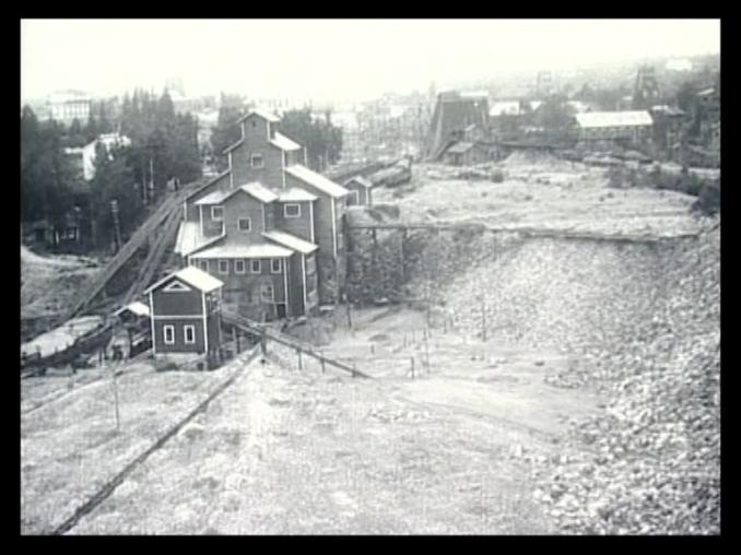 Bilder från Grängesbergs gruvor. Malmen lastas på tåg ...