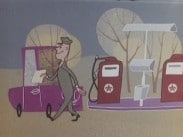 Buss anländer till grinden vid Filmstaden. 1895-års män kliver ur och går in på området. Uppbyggda kulisser ”Gamla stan”. Männen går omkring i Filmstaden.