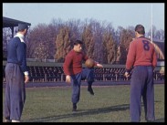 I vårt urval finns även andra sidan av myntet representerat i form av en reklamfilm för Epa Stormarknad från 1969 som säljer julefrid och en tecknad reklamfilm från Matador som låter alla barn förstå att det är rakblad från Matador som är varje fars drömjulklapp. I Einar Dahlins privata samlingar från 1962 kan vi se familjens och andra Stockholmares julfirande med bilder från bland annat varuhuset PUB:s julskyltning och andra gatumiljöer i traditionsenlig ljusskrud. Våra journalfilmer från 1940- och 1950-talet presenterar en rad Lucia-kandidater, ackompanjerade av jazziga muzakversioner av Sankta Lucia, från den tid då uttagningen också var en skönhetstävling. Inom ramen för dessa filmer finns även en skälmsk, för att låna speakerns ordval, Lucia i drag från Pressfotografernas klubbs firande på Skansen 1945. Märk väl den roade församlingens välondulerade huvuden.