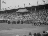 Bilder från Säter midsommaren 1945. Midsommarstången görs i ordning och reses. Dans.