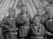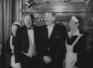 Några herrar och damer utanför hotell Continental i Stockholm. Bildandet av Sveriges Biografägarförbund. Ordförande Lars Bergström. Denna stumfilm visas med ny musik av Matti Bye.